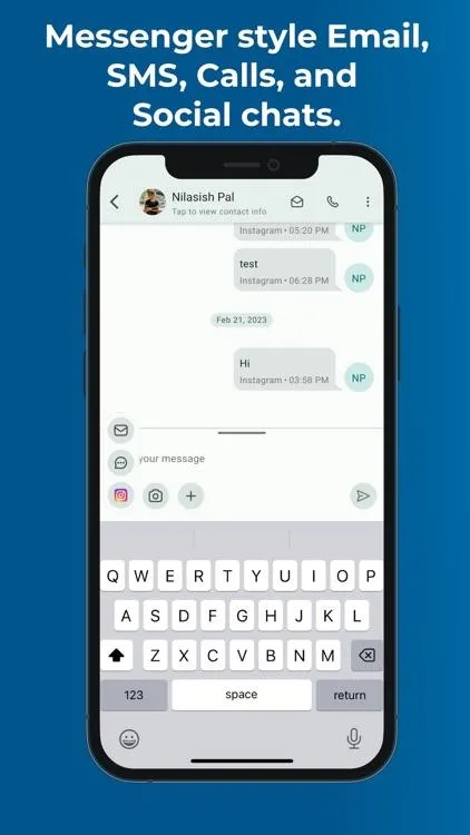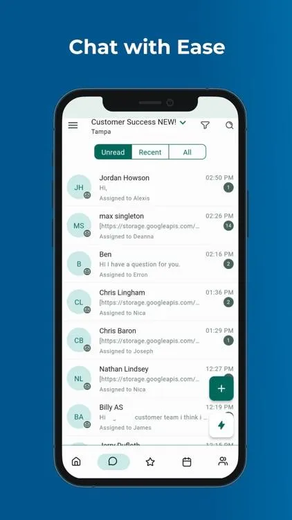 Conversations appear in a familiar feed format, resembling popular messaging apps